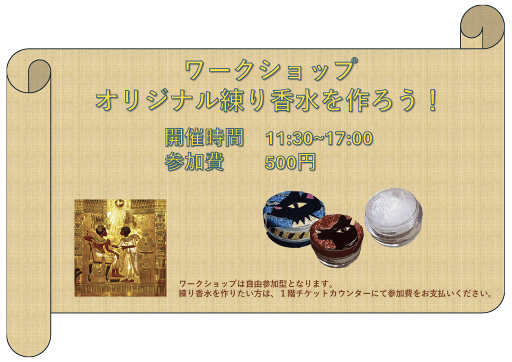 ご好評をいただいております「練り香水 ワークショップ」は平日に引き続き開催しております。