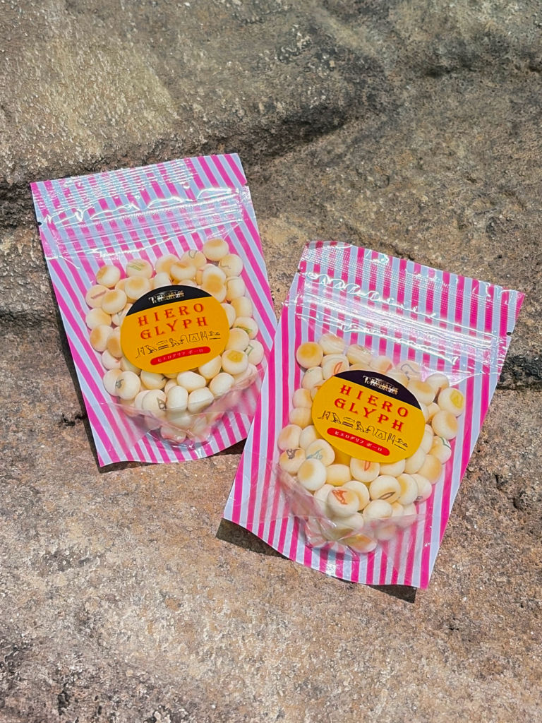 古代エジプト人が文字に込めた切実な願いや、愛らしい動物たちのシルエット。一粒食べるたびに、数千年の時を越えたロマンが口いっぱいに広がります。