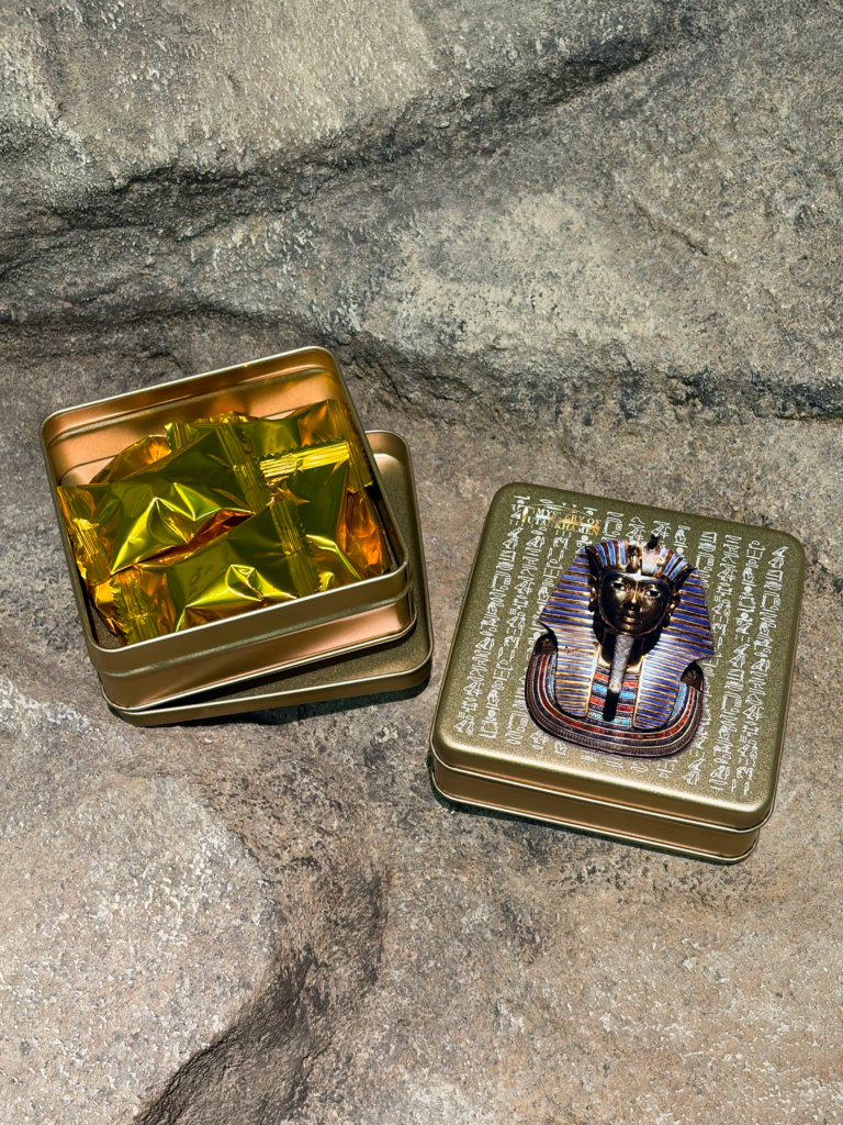 個包装のひとつひとつが特別な「ツタンカーメン仕様」のため、職場やご友人への「配り土産」としても最適。手に取った瞬間に会話が弾む、話題性抜群のアイコニックな一品です。